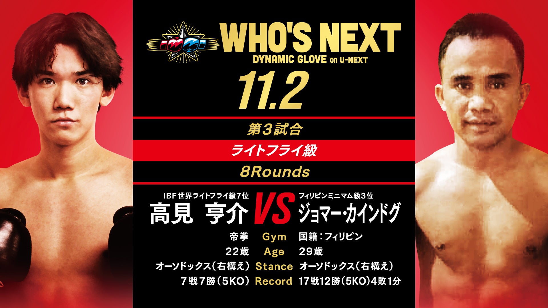 高見亨介(帝拳) vs ジョマー・カインドグ(フィリピン)