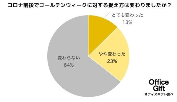 「コロナ前後でゴールデンウィークに対する捉え方は変わりましたか?」という設問に対し、3割以上の人が「とても変わった」「やや変わった」と回答しています。