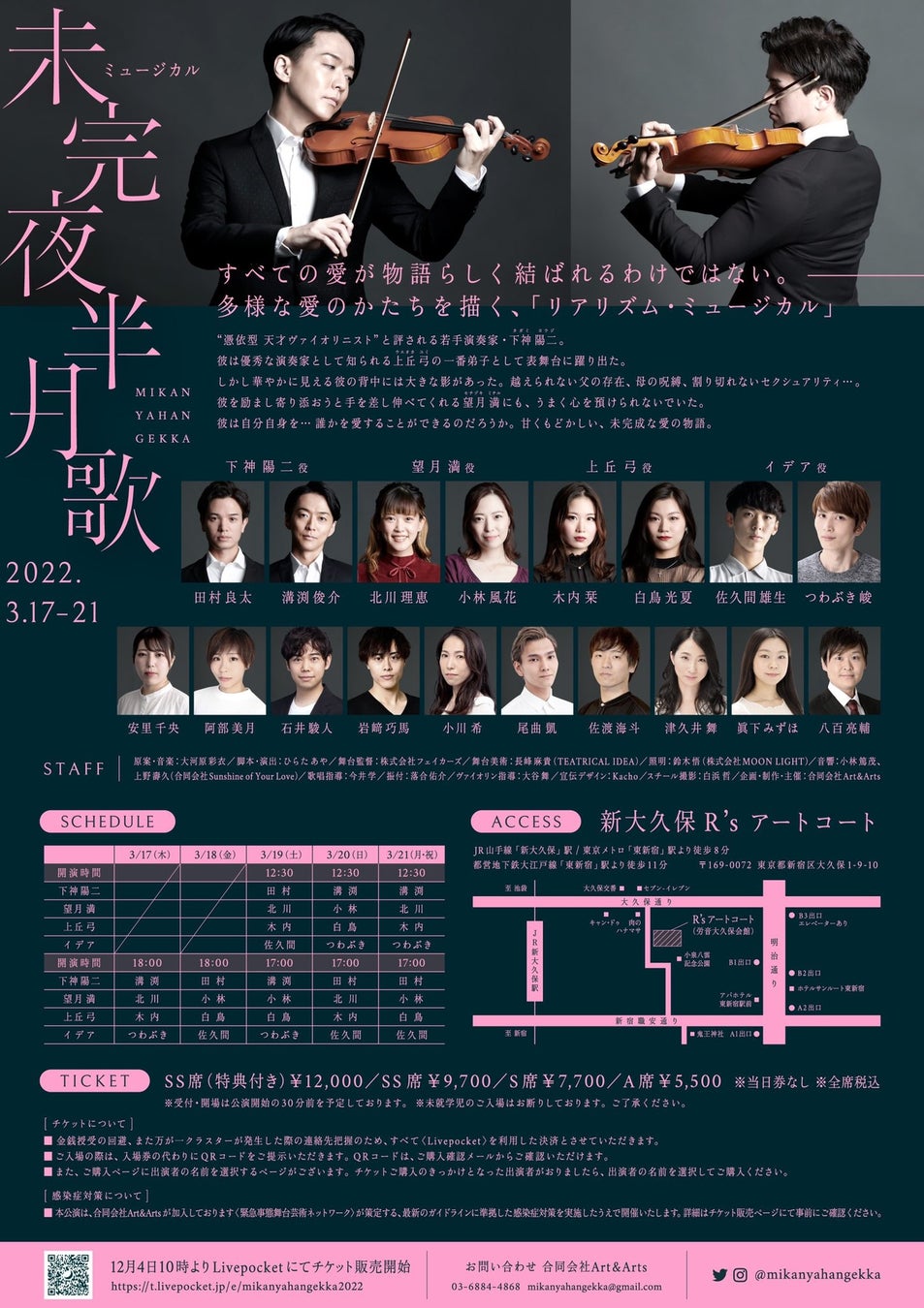 合同会社Art&Artsは2022年3月17日(木)~21日(月・祝)、新大久保R'sアートコートにおきまして、ミュージカル「未完夜半月歌」を上演いたします。