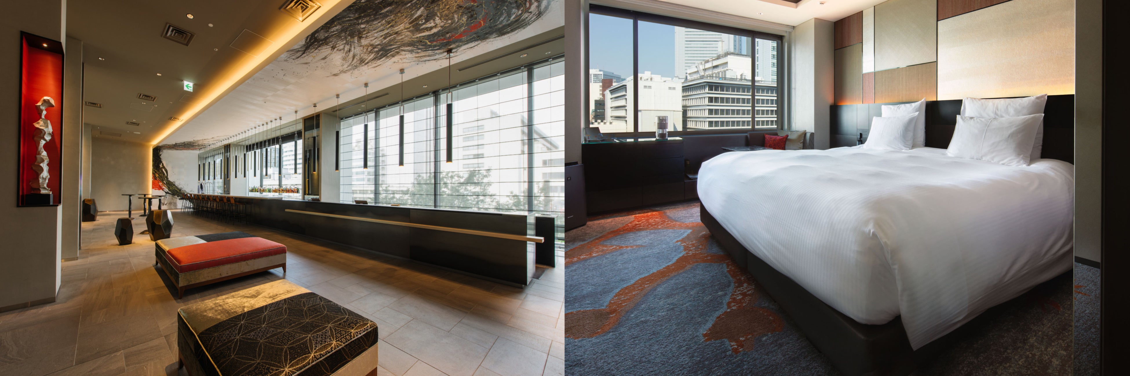 ダイナミックなアートが印象的なロビーラウンジ、モダンなルーフトップバー、美しい坪庭を望むエグゼクティブラウンジ、開放的な空間で旬の食材を使った芸術的なお料理の数々をお楽しみいただけるカジュアルダイニング、143のミニマルかつ機能的な客室、フィットネスを備え、JR駅直結の絶好のロケーションで、国内外のお客様に上質な滞在を提供しております。