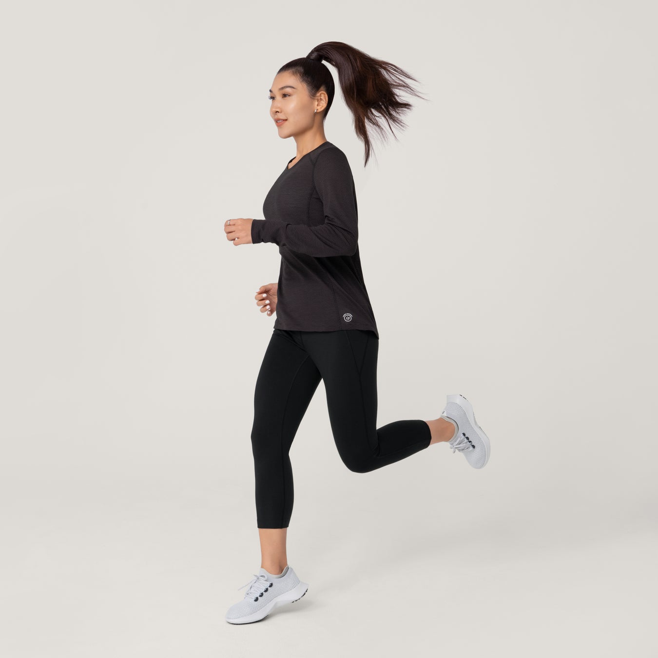 あらゆる女性の体型をサポートするハイライズデザインのレギンス。少し短めのカプリ丈がスポーティに見せると同時に、履き心地も少し涼しくしてくれます。スクワット・ストレッチ・ランのすべてに対応する4ウェイストレッチで、快適な履き心地です。体にぴったりと密着するプルコード、擦れを軽減するフラットロックシームを採用。左右どちらにでもスマホを入れて走れるポケット付き。素材には耐久性・通気性・吸湿性に優れ、汗のにおいを軽減させるメリノウールのほか、耐久性とサポート力を発揮するリサイクルナイロンなどを採用。