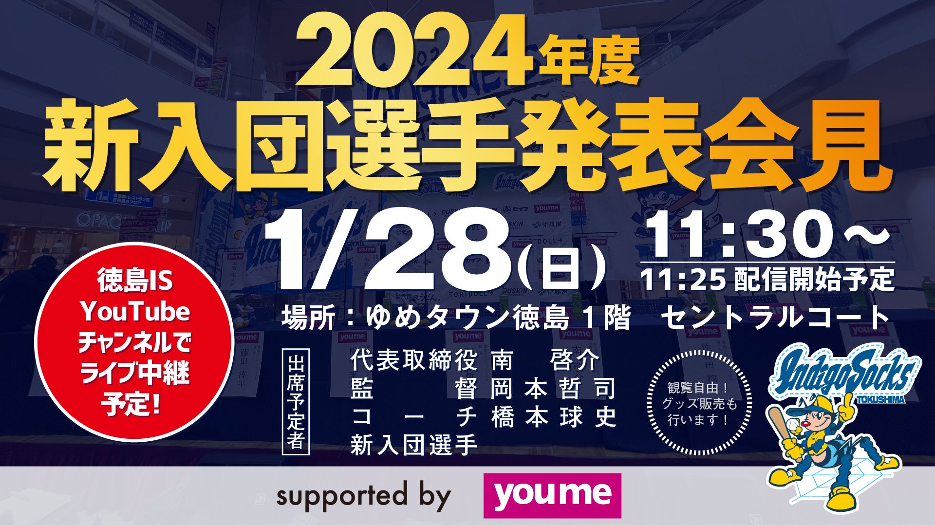このたび、徳島インディゴソックス球団では、以下の通り「2024年度 徳島インディゴソックス 新入団選手発表記者会見」をゆめタウン徳島にて一般公開で開催することが決まりましたので、お知らせ致します。