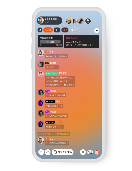 声だけでLIVE配信を楽しむことができるオーディオプラットフォームで、2018年に日本に参入し、Spoonならではの特徴と機能により、ユーザーはリアルタイムで声を配信し、リスナーとのコミュニケーションを楽しむことができます。
