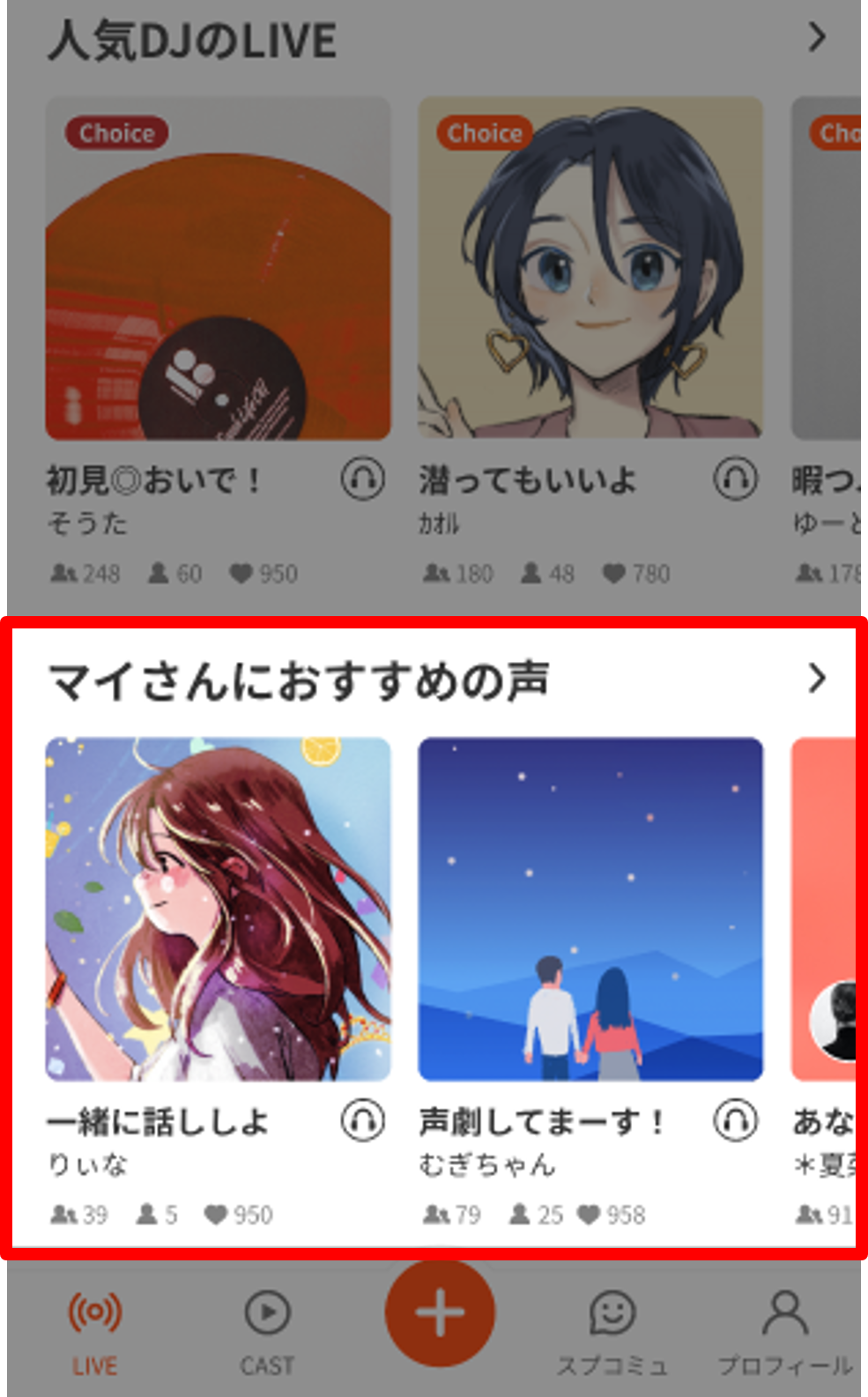 本技術は、他のオーディオソーシャルプラットフォームやアプリにはない、AIで声の好みをおすすめする機能です。リスナーが視聴するDJの声をAIが分析することで、好みにあった声のDJによるLIVE配信が「○○さんにおすすめの声」として、リスナーがアプリを開いた際にリアルタイムに表示されます。