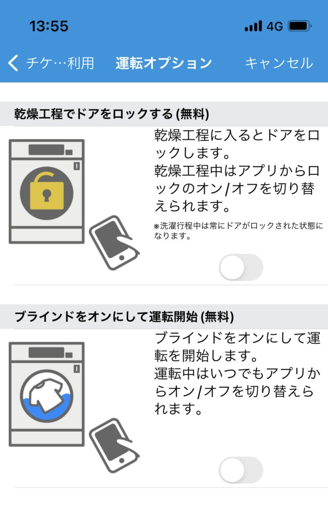 - 安心安全にコインランドリーを利用いただくため、ドアロック機能を開放