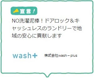 コインランドリーwash+が、全国防犯CSR推進会議にて、防犯CSR推進宣言しました。