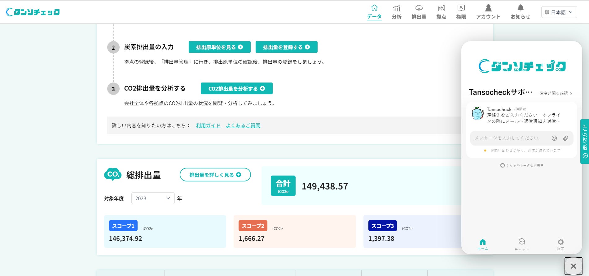 弊社で新たに開発したCO2排出量見える化サービス「タンソチェック」の全機能を無料で1年間利用できるキャンペーンをお知らせしたく本日はプレスリリースを致しました。