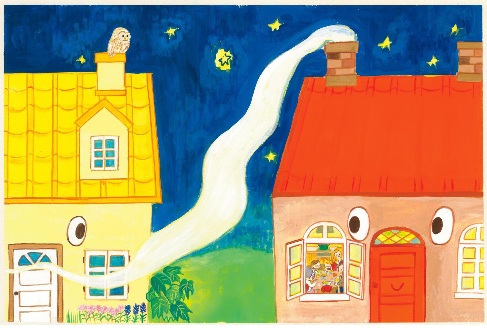 柔らかなタッチで描かれた絵は、見た人を笑顔にし、あたたかい気持ちにさせてくれます。そして、カワダクニコさんが描く、ちいさな家“おうちくん”たちによるこのお話は、子どもたちだけでなく、世代を超えた、多くの人の心に届く普遍的な物語となっています。