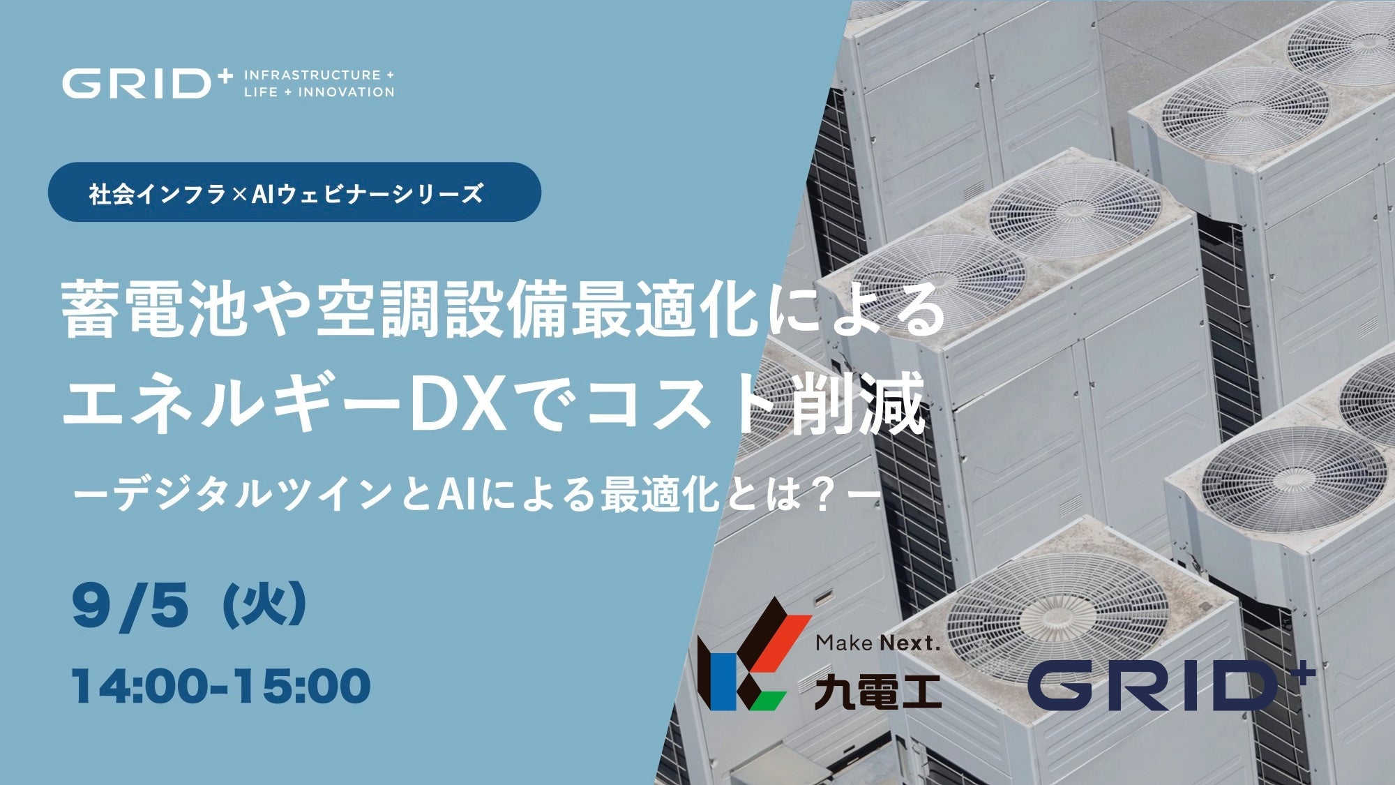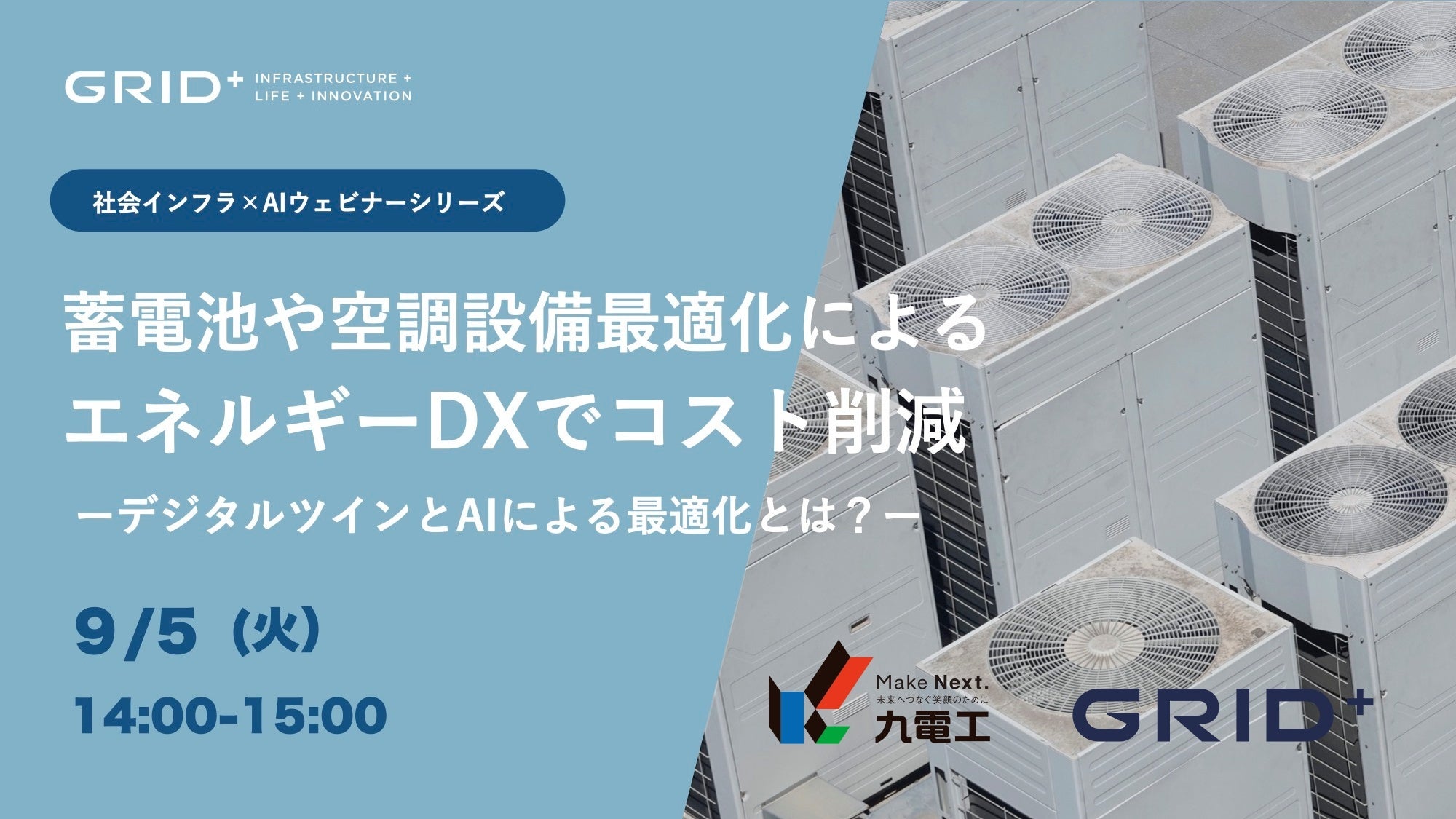 株式会社グリッドは、「蓄電池や空調設備最適化によるエネルギーDXでコスト削減」無料ウェビナーを2023年9月5日(火)に開催することをお知らせ致します。