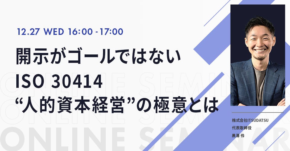 【12/27(水)開催・無料Webセミナー】開示がゴールではないISO 30414“人的資本経営”の極意とは