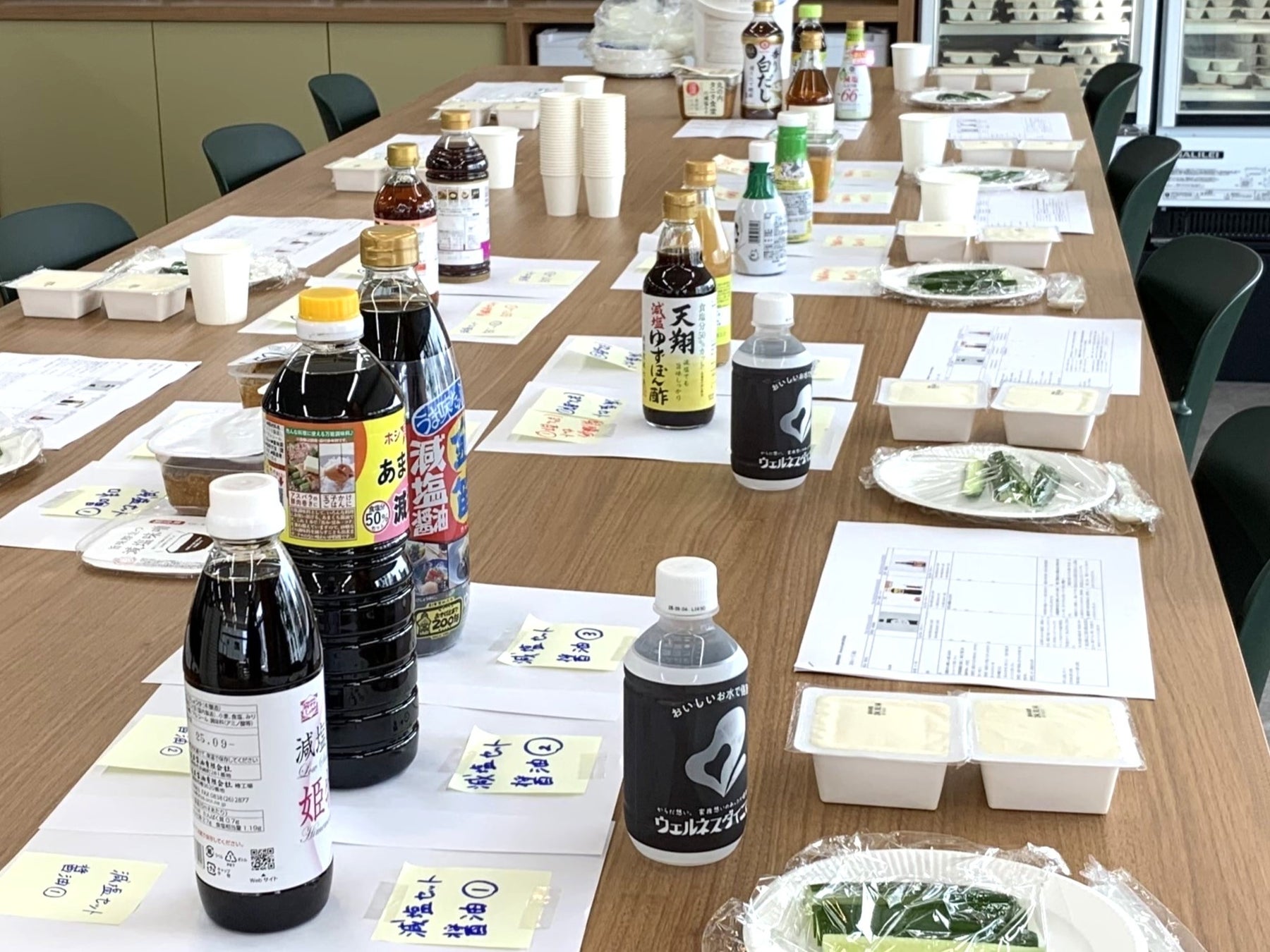 ウェルネスダイニングの管理栄養士が試食を行いながら、「安心して使っていただける栄養価」と、「減塩でも満足いただける味」を兼ね備えた調味料を選びました。