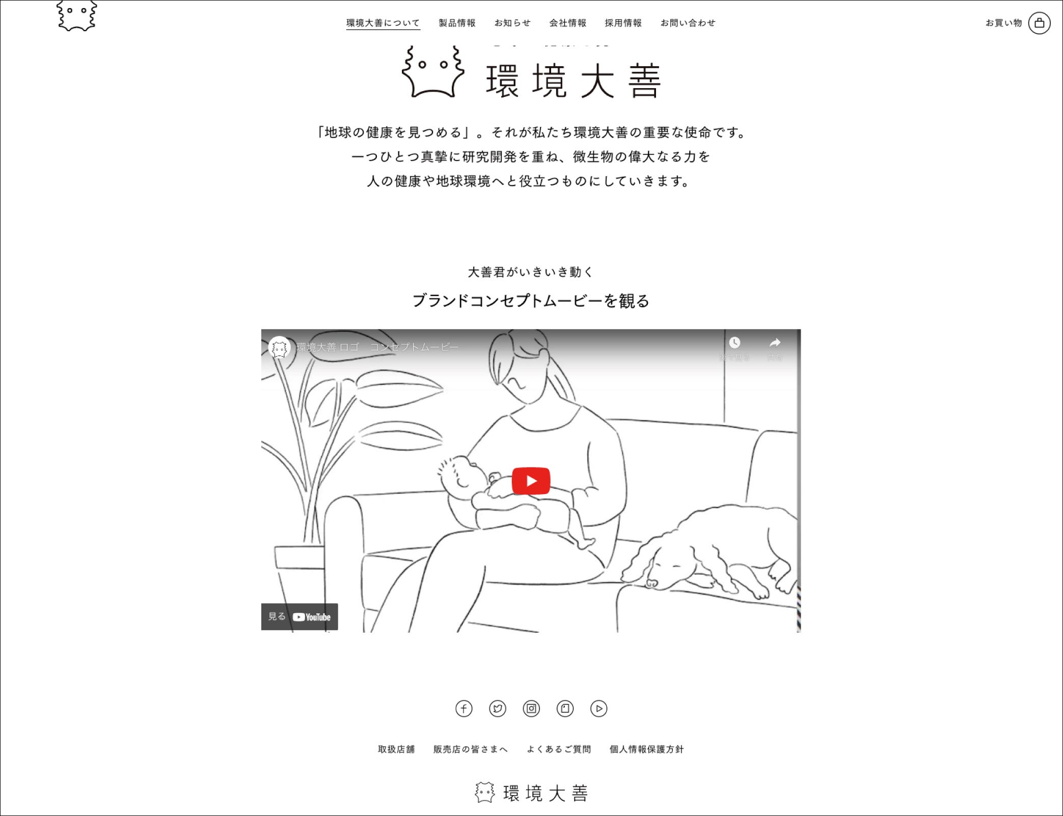 ムービーでは、パッケージでも使用しているイラストレーターの小川雄太郎さんが描く世界と共に、私たち環境大善が「地球の環境を見つめる」というスローガンのもとで日々考えていることや、ロゴの成り立ちも紐解かれています。動く大善くんが見られるのはWEBならではです。