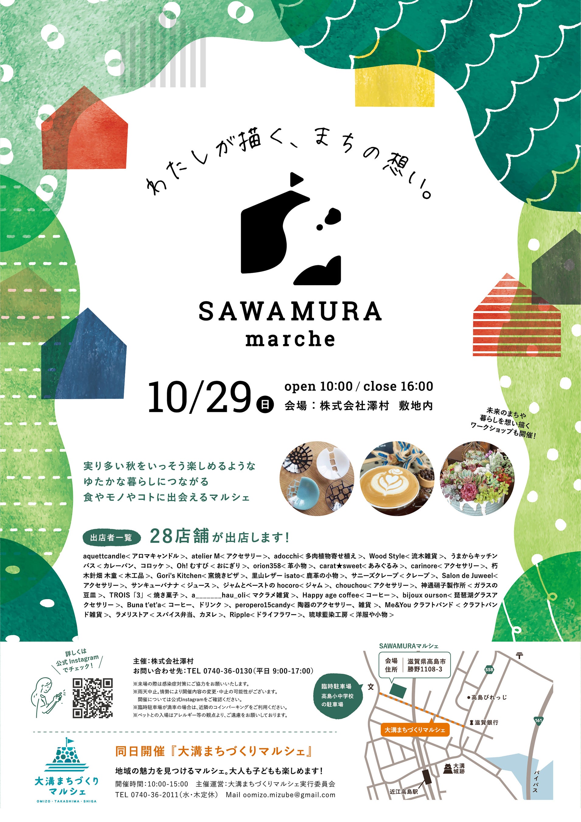 2023年10月29日(日)、同日にSAWAMURA本社のある旧大溝地区(滋賀県高島市勝野)をフィールドとした、「大溝まちづくりマルシェ」も開催されます。