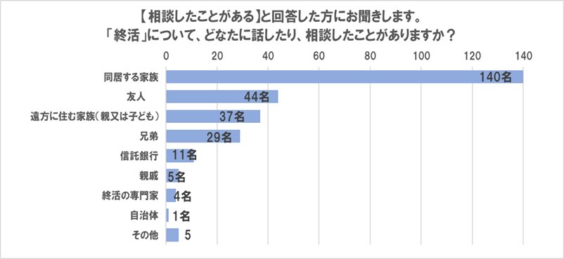 ■「終活」を相談した相手は、「同居する家族」が70%で断トツのトップ