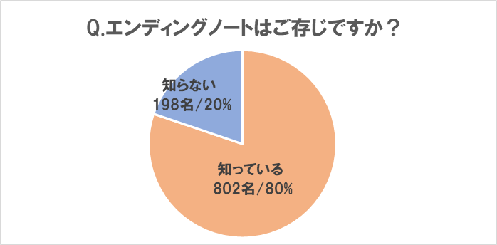 ■「終活」とともに波及した「エンディングノート」の認知度は80%と高いものの、「エンディングノート」