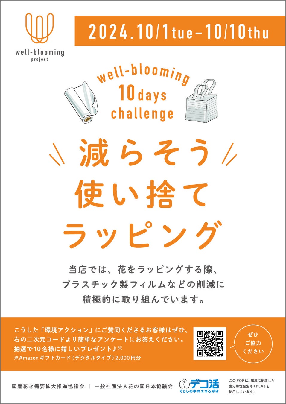 well-blooming 10days challenge 10月1日から10日間、環境アクションを推進!全国約400の花店で「 減らそう 使い捨てラッピング 」キャンペーンを開催