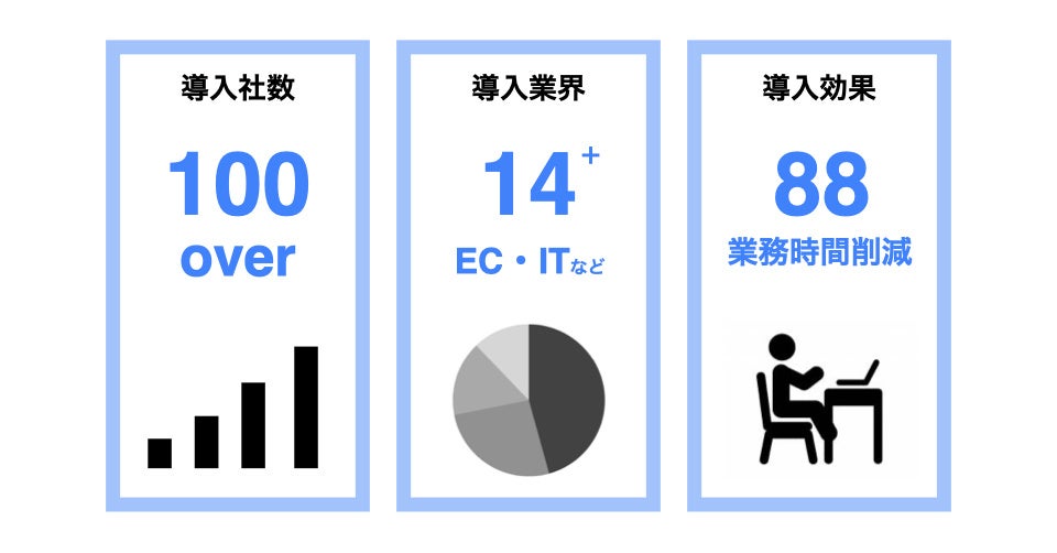 yaritoriは、2020年7月のβ版提供開始から1年半弱で、100社を超える企業さまに有料でご利用いただける規模まで成長しました。EC・IT・サービスなど14以上の業界で導入され、月88時間の業務時間削減などを実現しています。