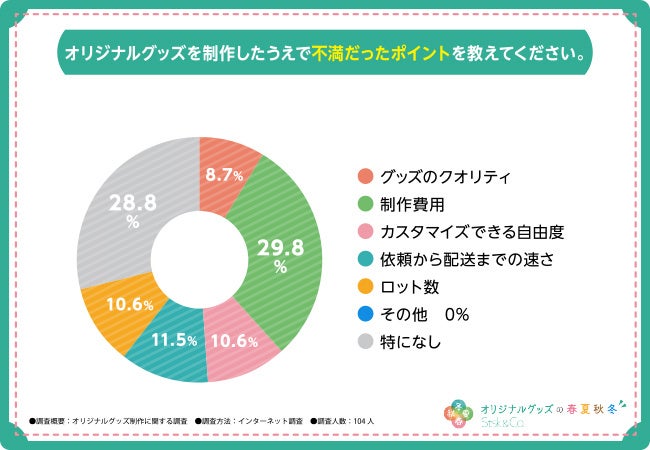 次に、「オリジナルグッズを制作したうえで不満だったポイントを教えてください。」と質問したところ、