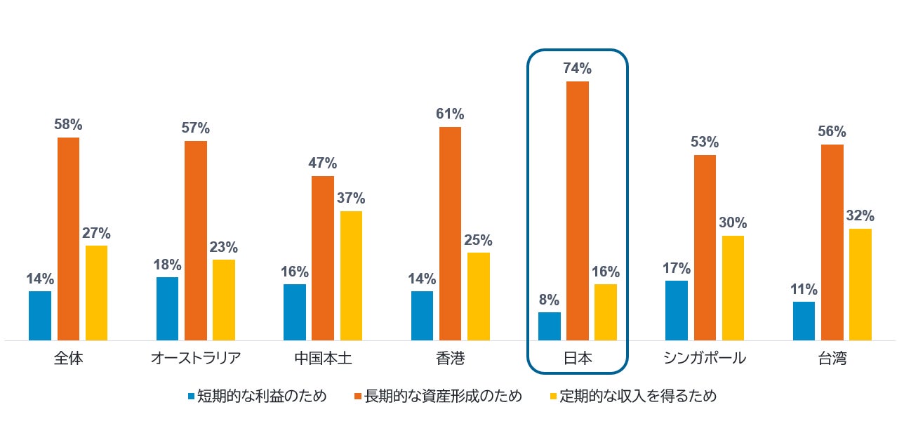 ・全体の半数以上、日本は7割超の投資家が長期目線での資産形成のために投資