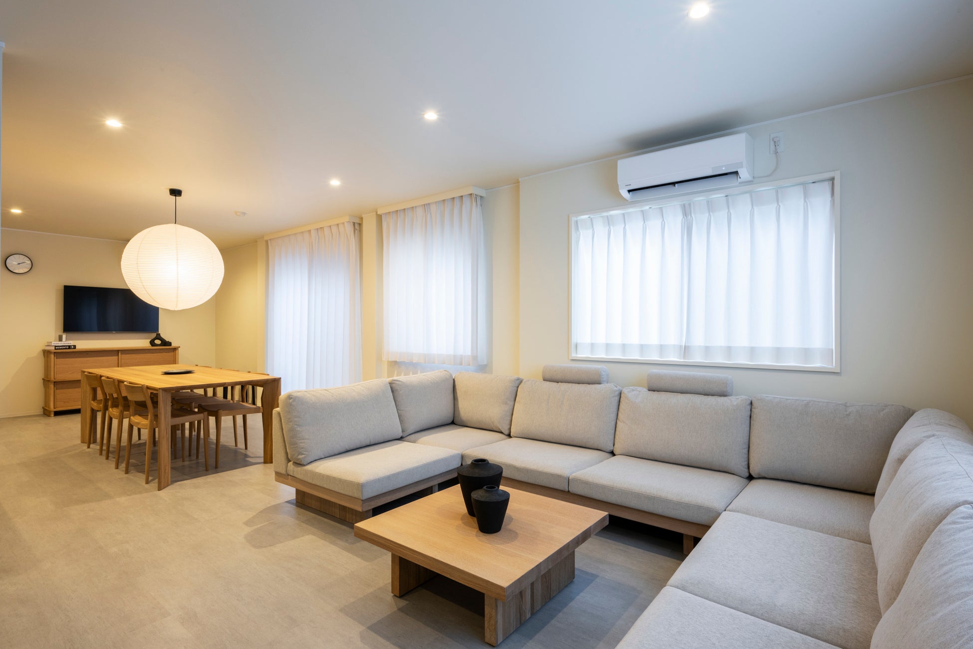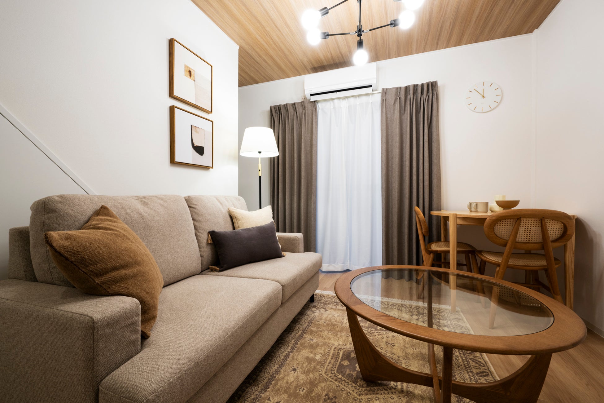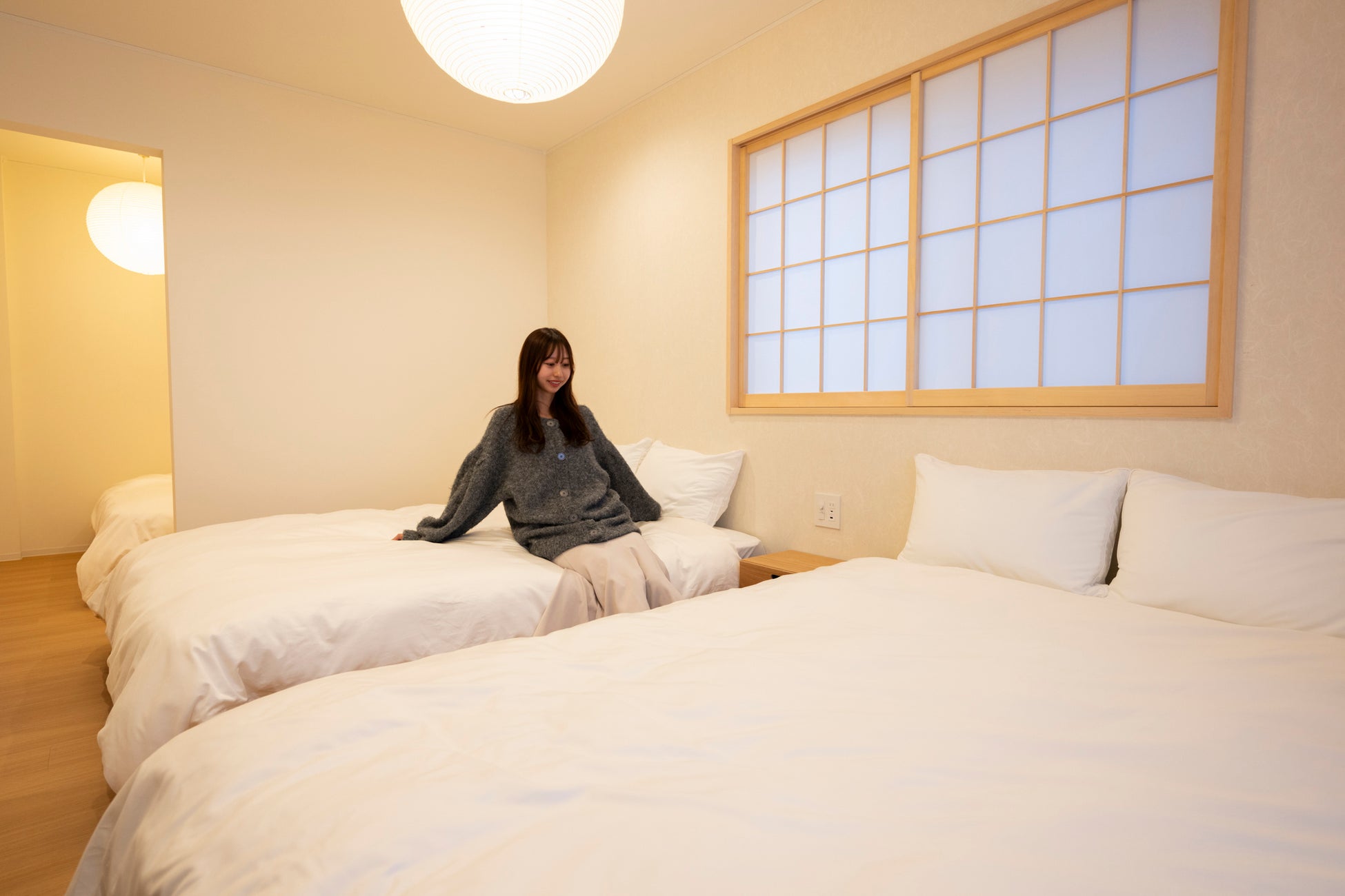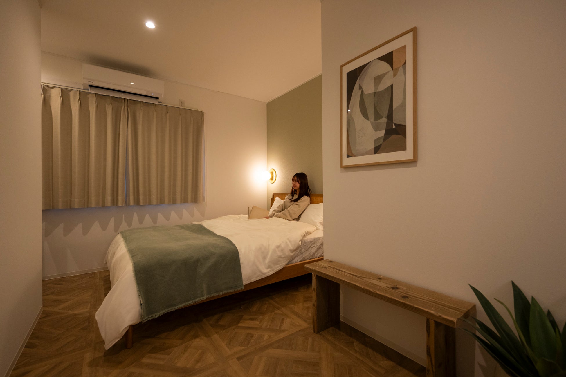2024年1月にOPENしたばかりで3階建の建物の3部屋をホテルとしてご案内しております。最大8名様が宿泊可能なデラックスルームから単身者でも心地の良い広さのルームまでございます。ナチュラルなカラーでまとめられたインテリアデザインと心地の良いライティングは、旅の疲れを癒すのに最適です。