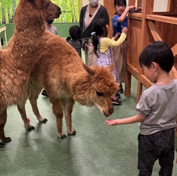 癒しの空間「都会のオアシス」をコンセプトとして2023年4月にオープンした「アルパカふれあいランド」は、柵の中に入って、直接アルパカに触れたり、餌をあげたりできる体験施設です。