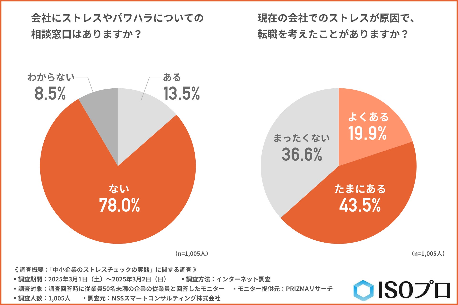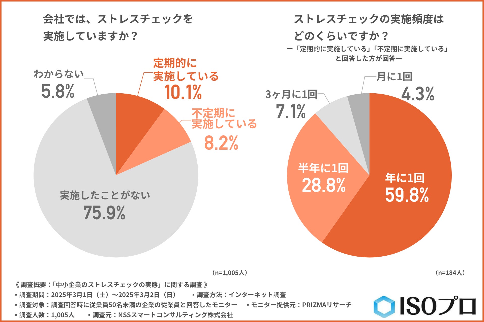 そこで今回、各種ISOの新規取得・運用サポートサイト『ISOプロ』(https://activation-service.jp/iso/)を運営するNSSスマートコンサルティング株式会社は、従業員50名未満の企業の従業員を対象に、「中小企業のストレスチェックの実態」に関する調査を実施しました。