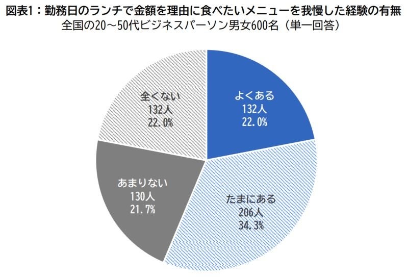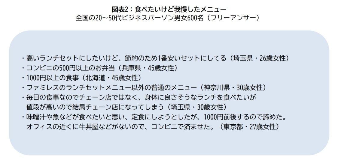・多くのビジネスパーソンが食費を節約しており、勤務日のランチを自由に選ぶことができていない。