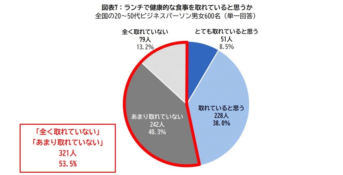 半数以上が健康的なランチを「全く取れていない」「あまり取れていない」と回答