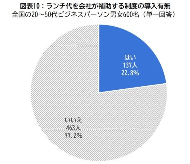 ・会社が従業員のランチ代を補助する「食事補助制度」が勤務先に導入されていない人が多いことが浮き彫りになった。