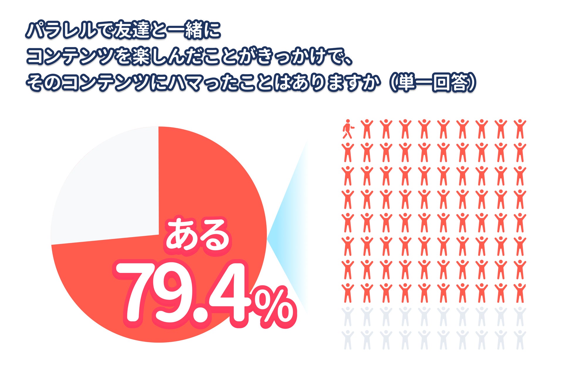 実際に、パラレルで友達と一緒にコンテンツを楽しんだことがきっかけでそのコンテンツにハマったことがあるユーザーは79%に達します。
