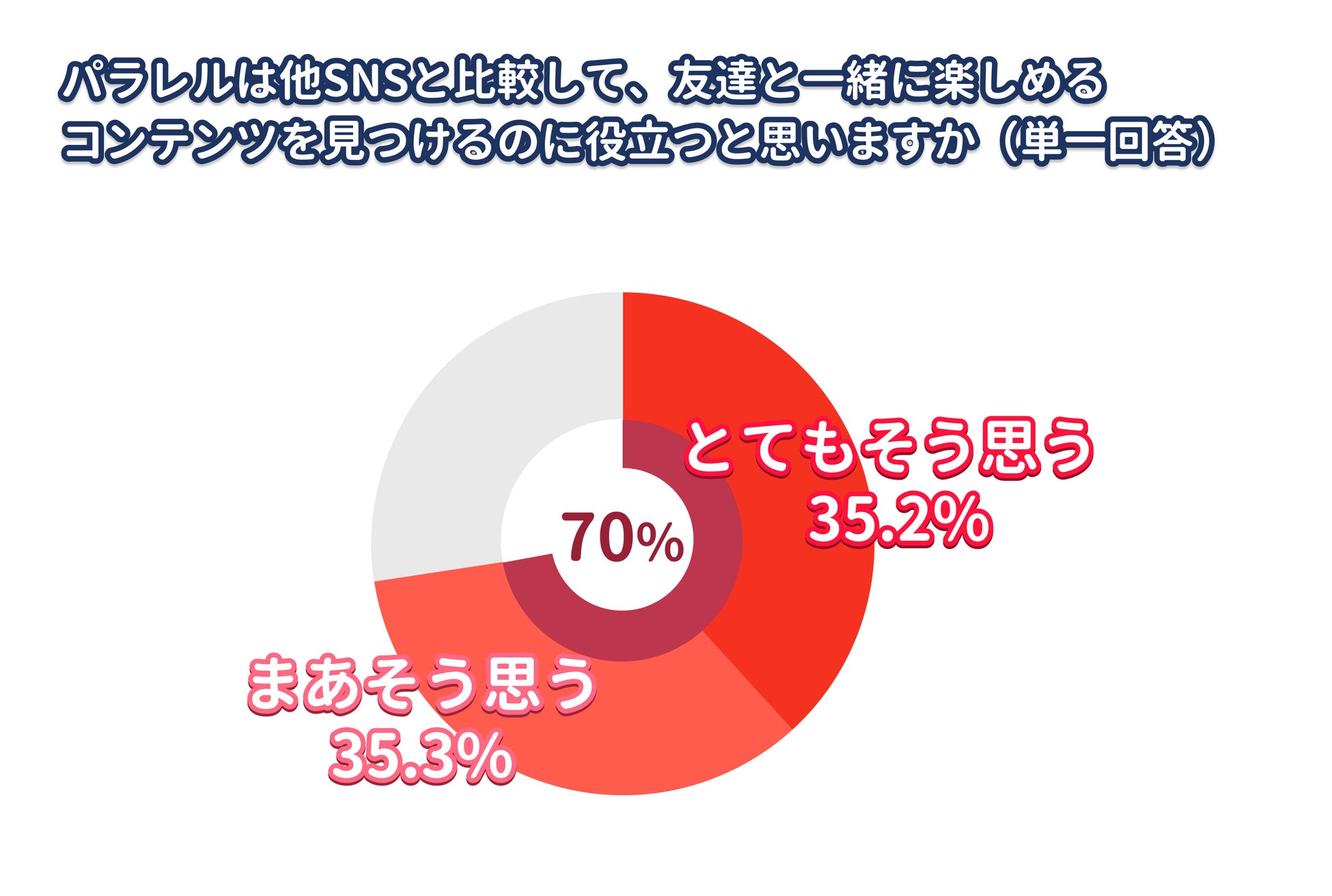 ユーザーの70.5%がパラレルを「友達と一緒に楽しめるコンテンツを見つけるのに役立つ」と回答