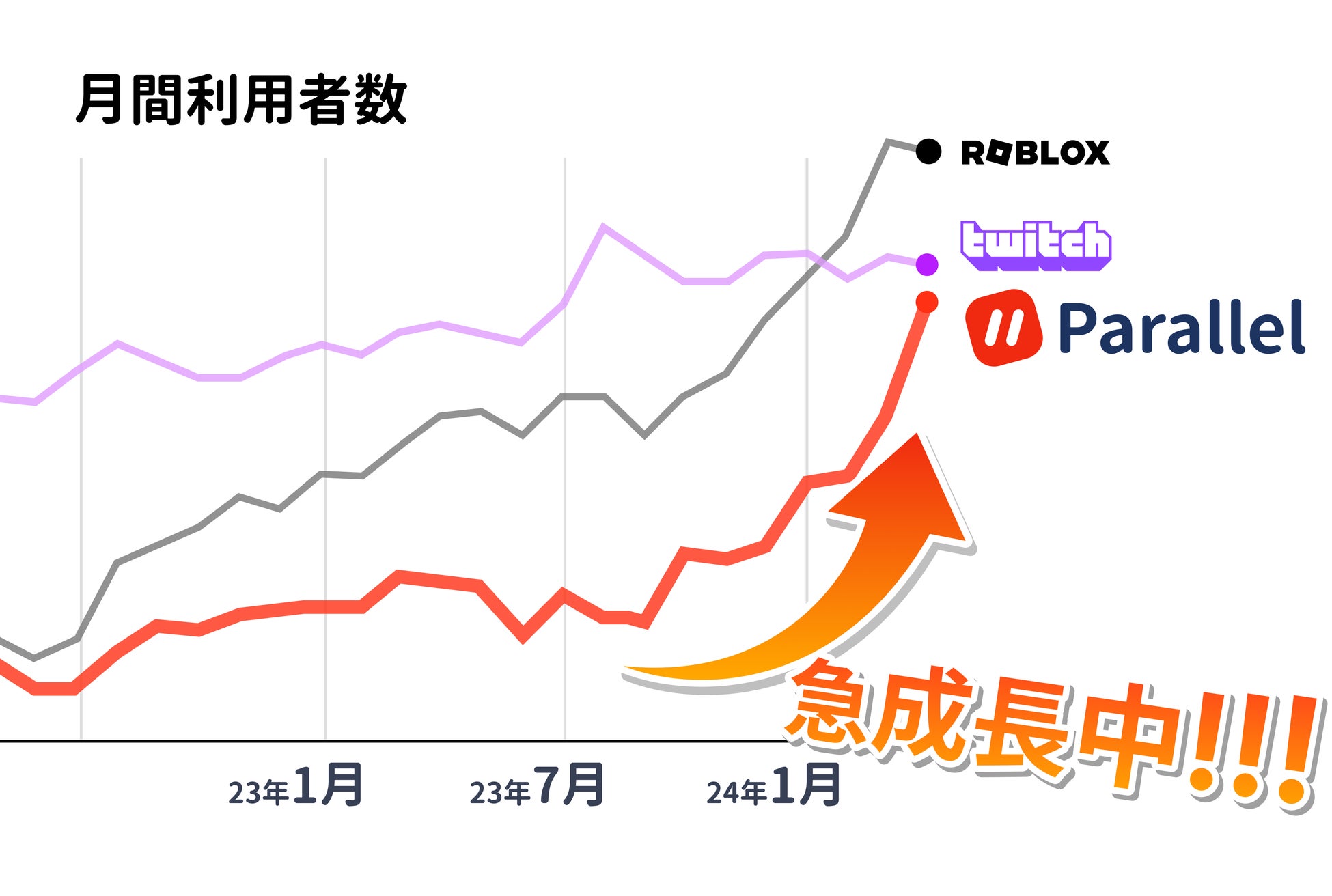 また、海外の配信プラットフォーム「Twitch」と同規模にまで成長、急成長中のオンラインゲームプラットフォーム「Roblox」と同レベルのスピードで規模を拡大しています。