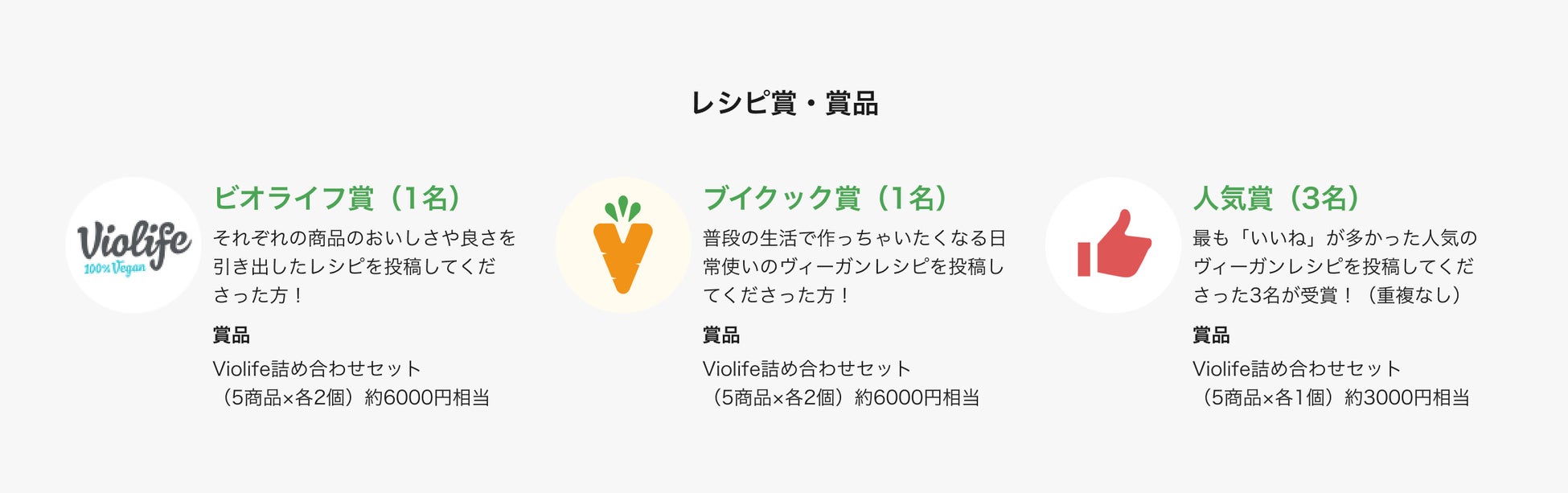 応募条件:「Violife」シリーズ5種類のうち1つ以上を使ったヴィーガンレシピ