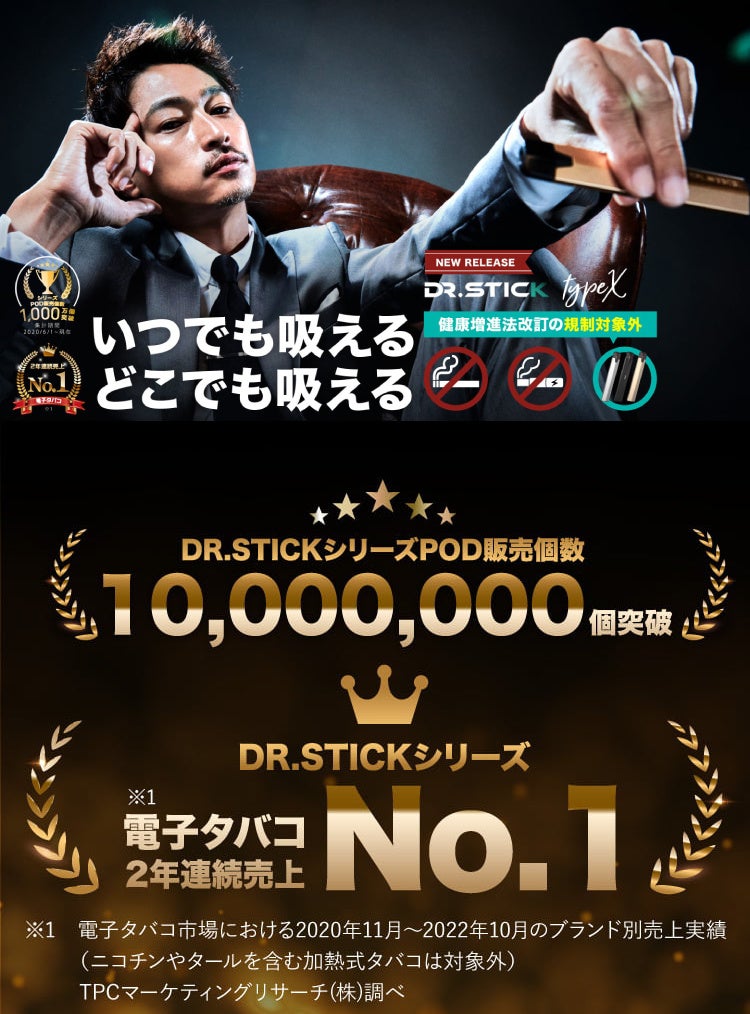 株式会社HALが展開を行うノンニコチンの電子タバコブランド「Dr.stick(ドクタースティック)」シリーズが、「電子タバコ売上2年連続No.1」を獲得しました!
