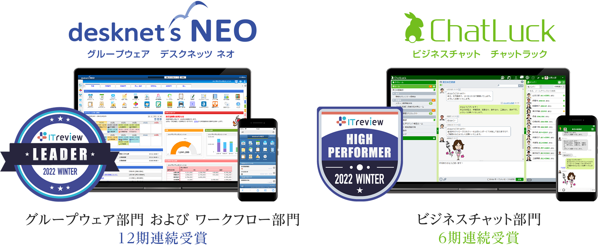 ~グループウェア部門、ワークフロー部門に『desknet's NEO』が12期連続、ビジネスチャット部門に『ChatLuck』が6期連続受賞~