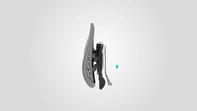minicuteは人間工学に基づいて設計された背もたれです。腰を2つのパットに密着させて、着座時にも直立姿勢のような背筋の伸びた状態を維持し、自然な姿勢をサポートします。