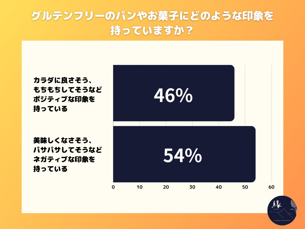20代~50代男女のグルテンフリーのイメージはポジティブ派が46% ネガティブ派が54%