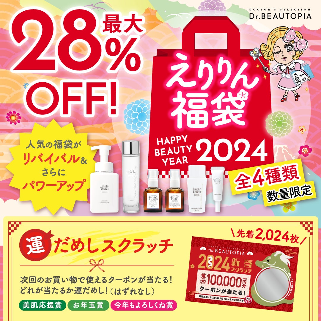 株式会社NIKU(本社:東京都新宿区 代表取締役 西須克己 )は、上原恵理開発のブランド『Lov me Touch & réveiller』より『Dr.BEAUTOPIA えりりん福袋2024』を2023年12月20日(水)より発売開始いたします。