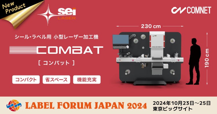 コムネット株式会社は、「ラベルフォーラムジャパン2024」へ出展いたします。デジタル後加工機の新製品、シール・ラベル用レーザー加工機 SEIシリーズ COMBAT(コンバット)を初出展いたします。