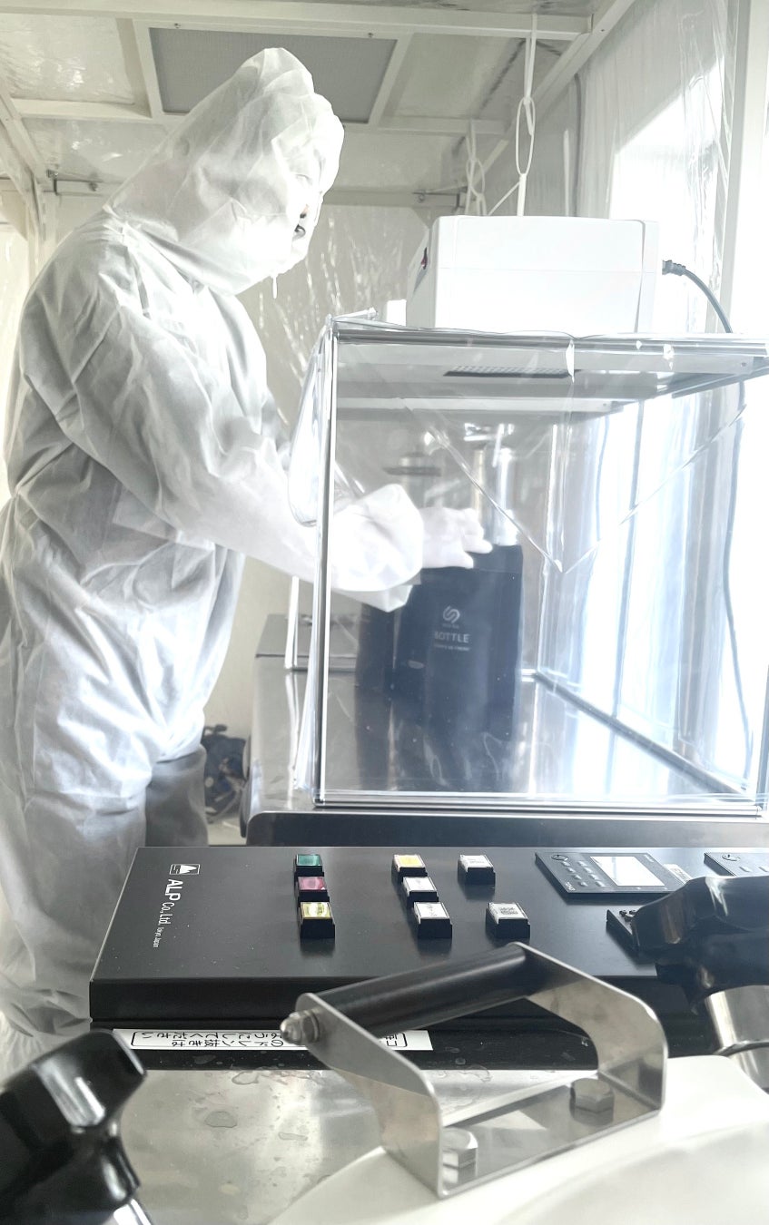 当社の充填パートナー企業であるサトルノジャパン株式会社(代表取締役社長:三ツ井正彦)との連携により、完全無菌室で、衛生環境を担保した状態で、真空容器に充填いたします。各酒蔵様は従来通りに瓶詰めもしくはタンクに詰めて、そのままお送りいただくのみで、真空日本酒の製品化が可能となります。