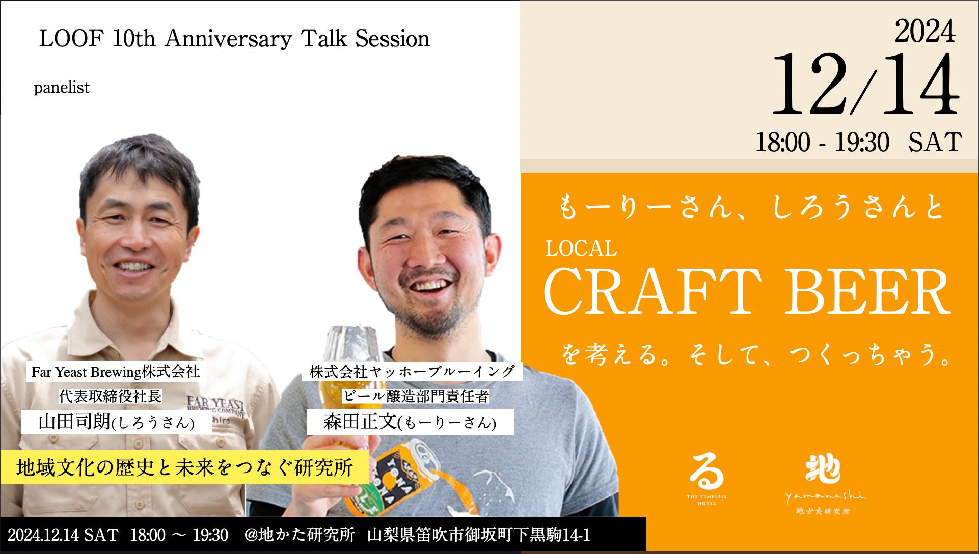 一棟貸し古民家宿を運営する株式会社LOOOF~るうふ~(山梨県笛吹市、代表取締役:保要佳江、以下るうふ)は、るうふ10周年記念企画 第3弾&地域文化の歴史と未来をつなぐ場所“地かた研究所”のオープン記念で、12月14日(土)るうふACADEMY Session 1『LOCAL CRAFT BEERを考える。そして、つくっちゃう。』を開催致します。