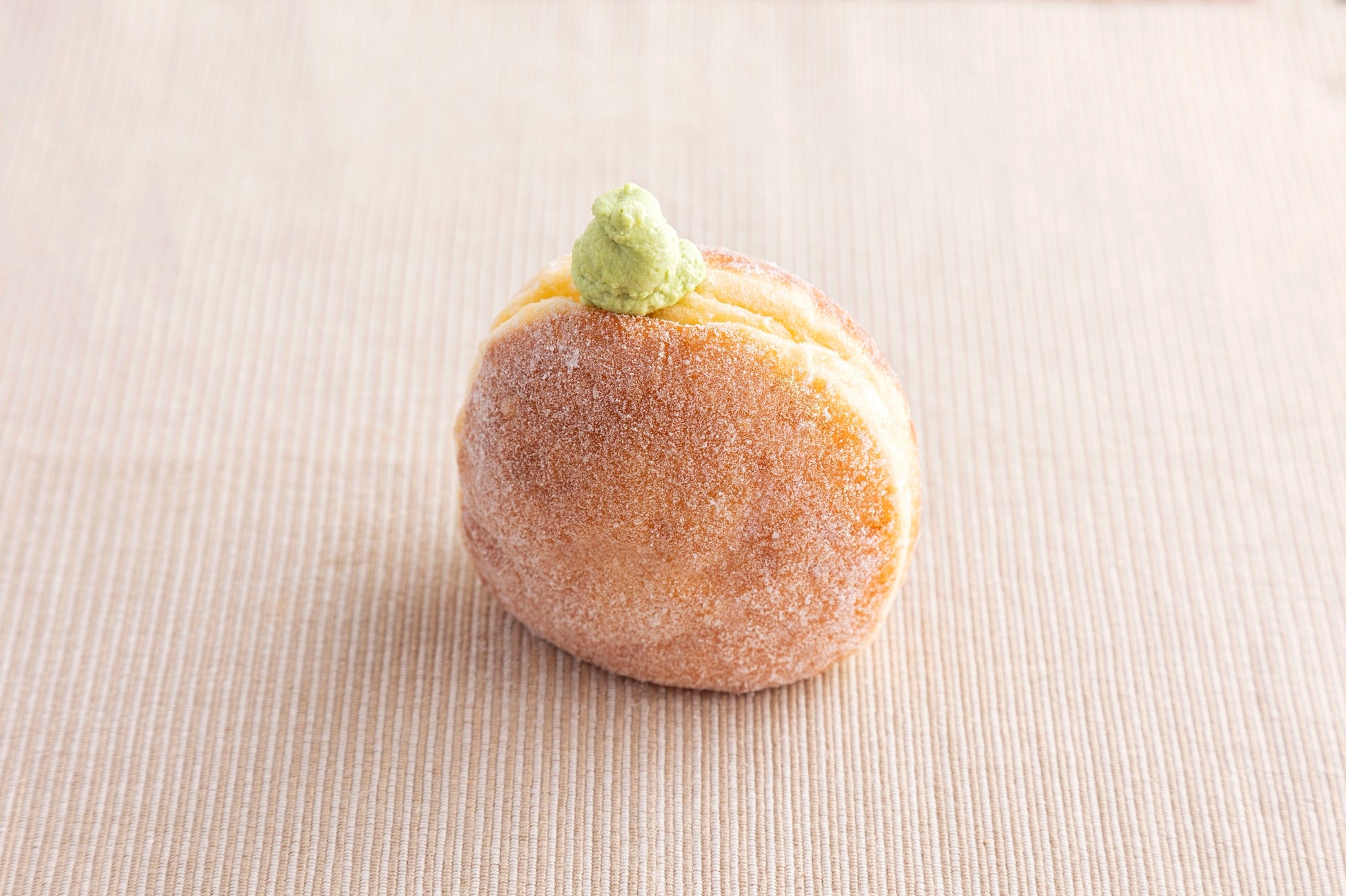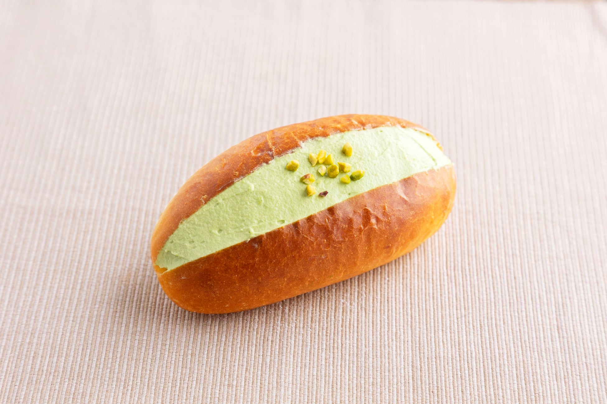 ブリオッシュ生地に香ばしいピスタチオクリームを混ぜた自家製生クリームをたっぷり詰め込みました。