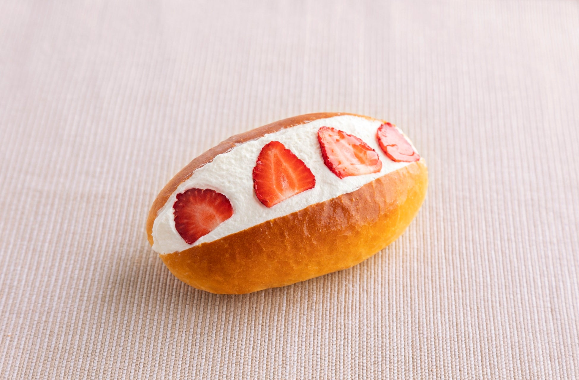 513BAKERYこだわりのなめらかな自家製生クリームを溢れんばかりにサンドし、フレッシュなストロベリーをトッピング。中にはストロベリージャムをアクセントとして入れました。