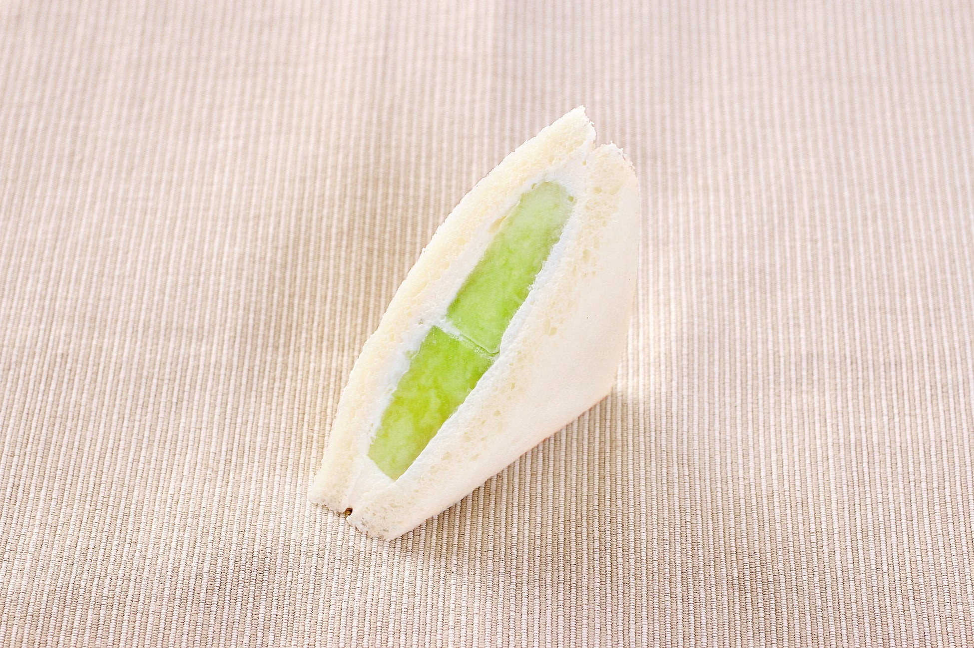 513BAKERYの高級食パン「そのまんま食パン」に、伊勢志摩サミットの食材に選ばれ、皇室にも献上された「南張メロン」と北海道産の自家製生クリームをサンド。南張メロンのみずみずしい食感と上品な甘さが味わえる、高級食材のみを使った贅沢なフルーツサンド。