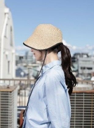 後ろ部分をスッキリさせているので、結んだ髪もそのまま出せます。紐付きで、垂らしてもコーディネートのアクセントになり、風が強い日は結んで飛ばないようにすることができます。折りたたみ可能で、UV遮蔽率90%、自宅で手洗い可能、見た目も優れた帽子です。