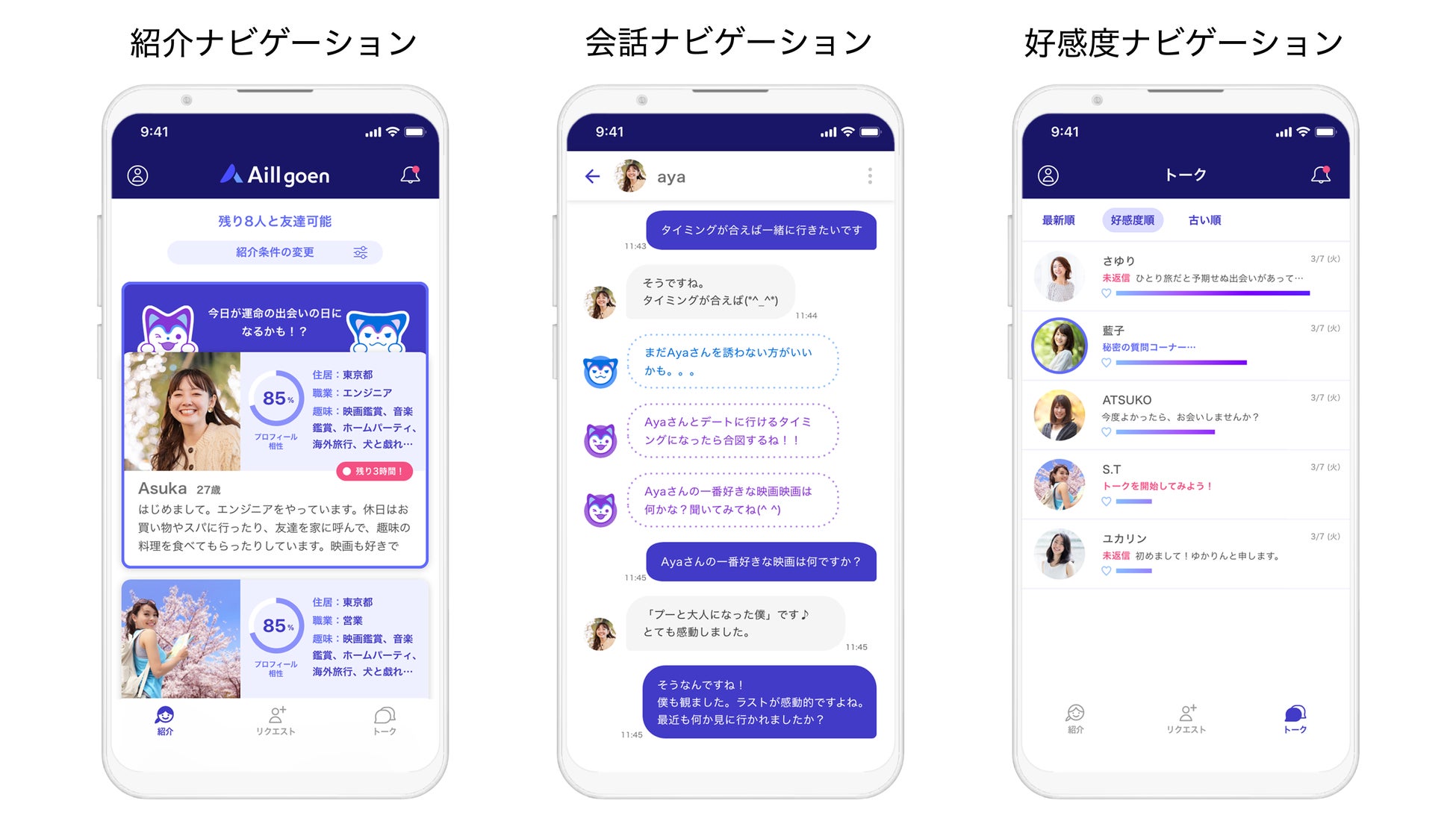 Aill独自のAIが共通の友達のように2人の関係構築をサポート