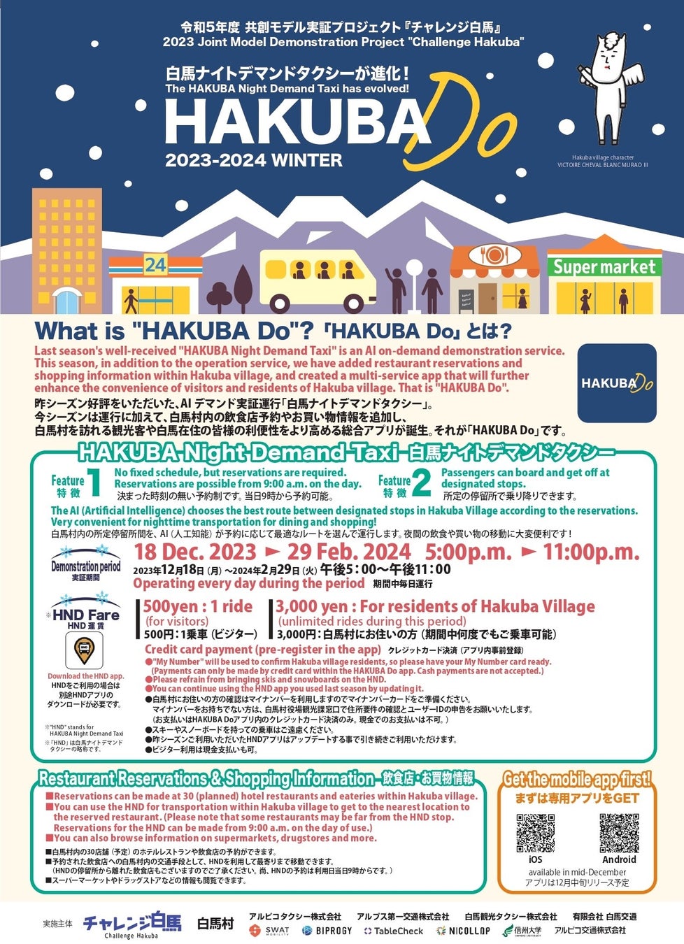 白馬村、アルピコタクシー株式会社、アルプス第一交通株式会社、白馬観光タクシー株式会社、有限会社白馬交通、アルピコ交通株式会社、SWAT Mobility Japan 株式会社、BIPROGY株式会社、一般社団法人 長野ITコラボレーションプラットフォーム、国立大学法人信州大学、株式会社TableCheck