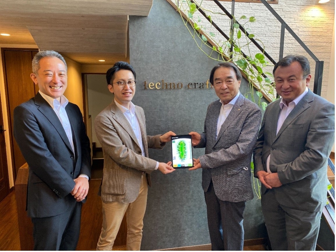 ▲左から株式会社IRIS 代表取締役副社長:宇木 大介 、株式会社IRIS 代表取締役社長: 眞井 卓弥、株式会社テクノクラフト 代表取締役:栂坂 昌業、株式会社テクノクラフト 執行役員 社長室長:谷田 洋平