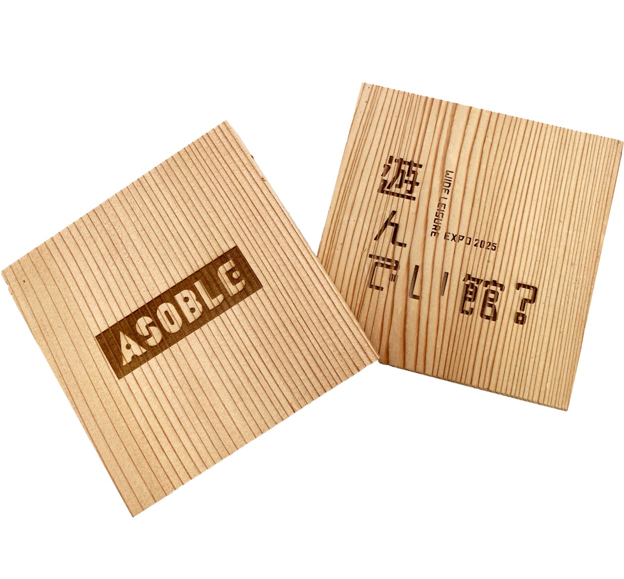今だけのオープン記念として、11月12日(水)より、ASOBLEオリジナルデザインの「えんぴつ(※1)」「エコバッグ(※2)」をプレゼント。さらに、11月15日(土)からは、「WIDE LEISURE EXPO 2025 遊んでい館?」のフローリングなどに使用されていた九州産銘木を使った「オリジナルコースター(※3)」も数量限定で配布いたします。