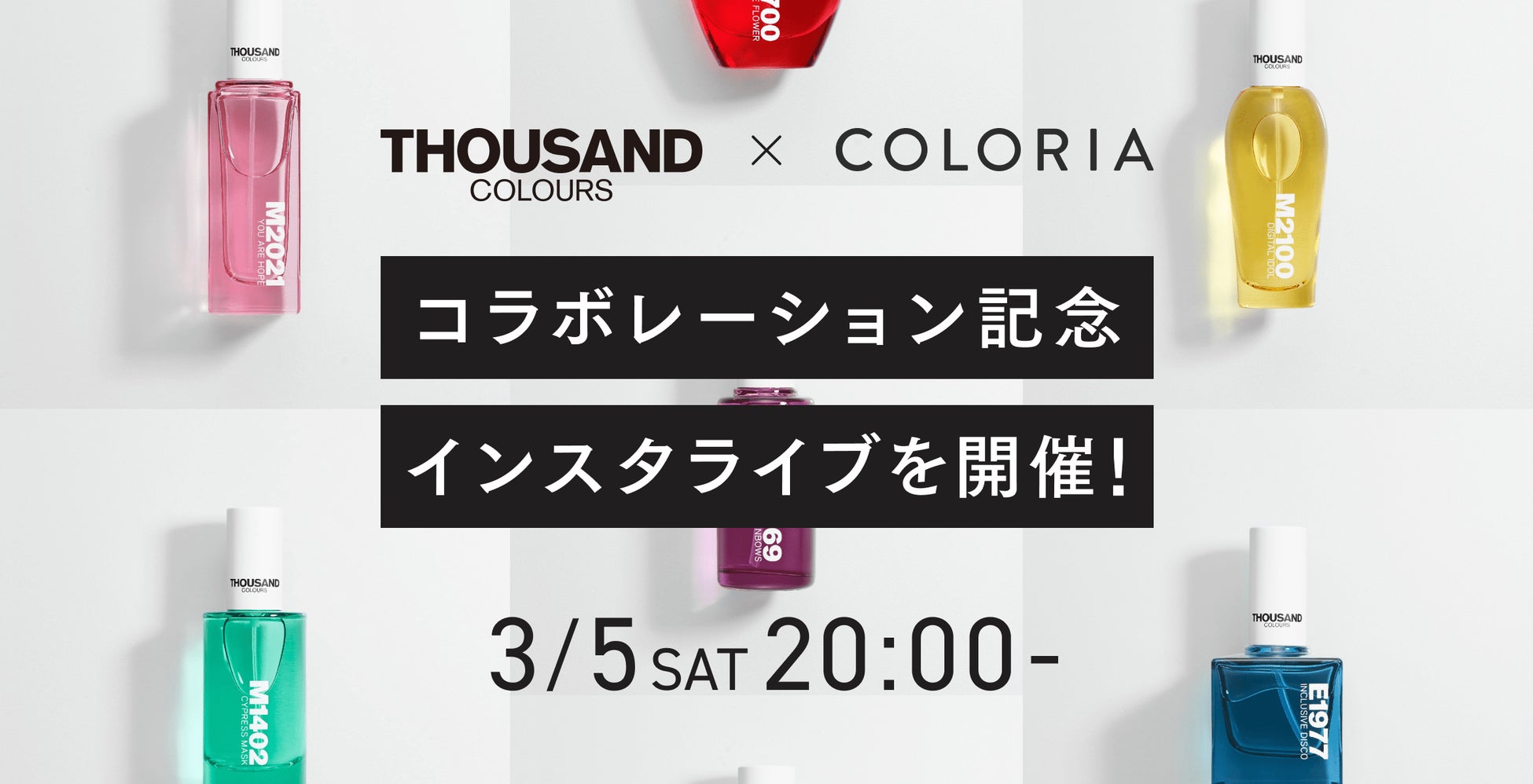 香りの総合プラットフォーム「カラリア」を運営する株式会社High Linkは、香水ブランド「サウザンドカラーズ」とのコラボレーションを記念し、「カラリア」の公式インスタグラムにて3月5日(土)20時よりインスタライブを開催いたします。